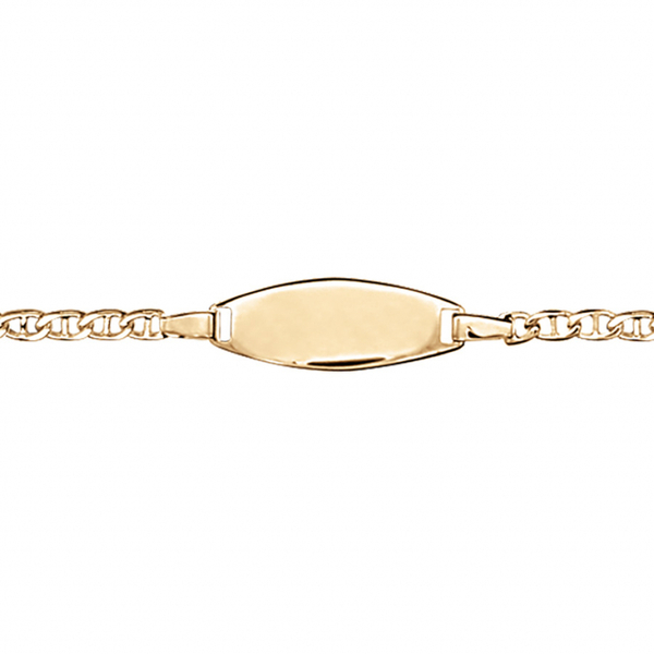 IDENTITE BEBE VERMEIL PLAQUE OVALE MAILLE MARINE FERMOIR AR 14CM REGLABLE 12,5CM