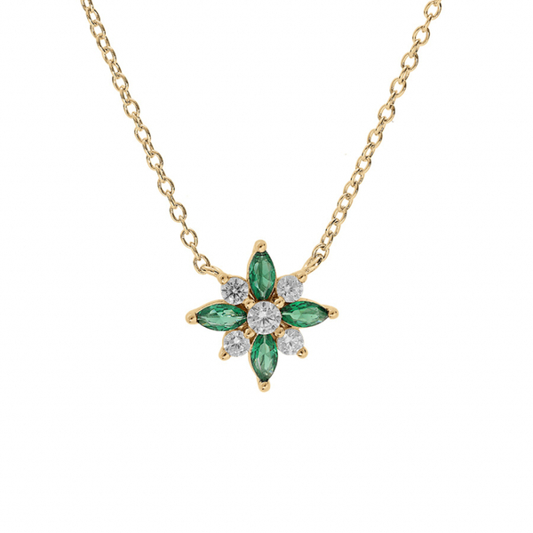COLLIER VERMEIL FLEUR OXYDES BLANCS ET VERT SERTIS 42+3CM