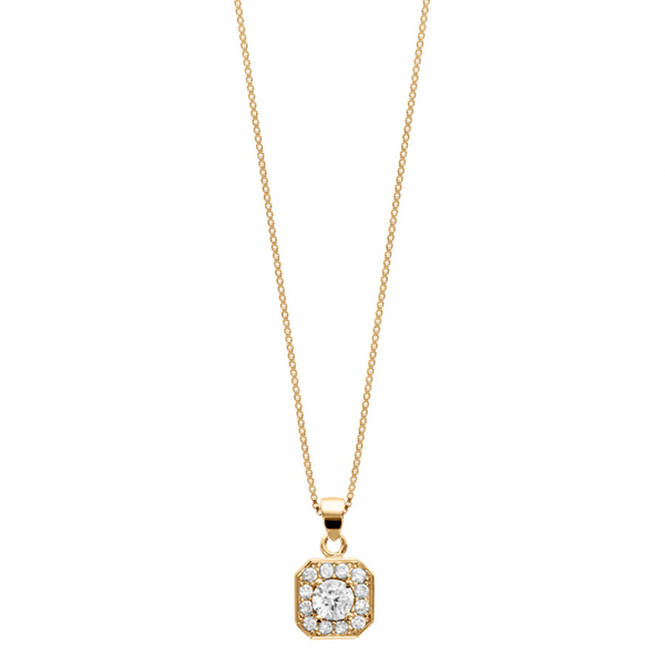 COLLIER VERMEIL PENDENTIF CARRÉ OXYDES SERTIS BLANCS PIERRE CENTRALE SYNTHETIQUE BLANCHES 42+3CM